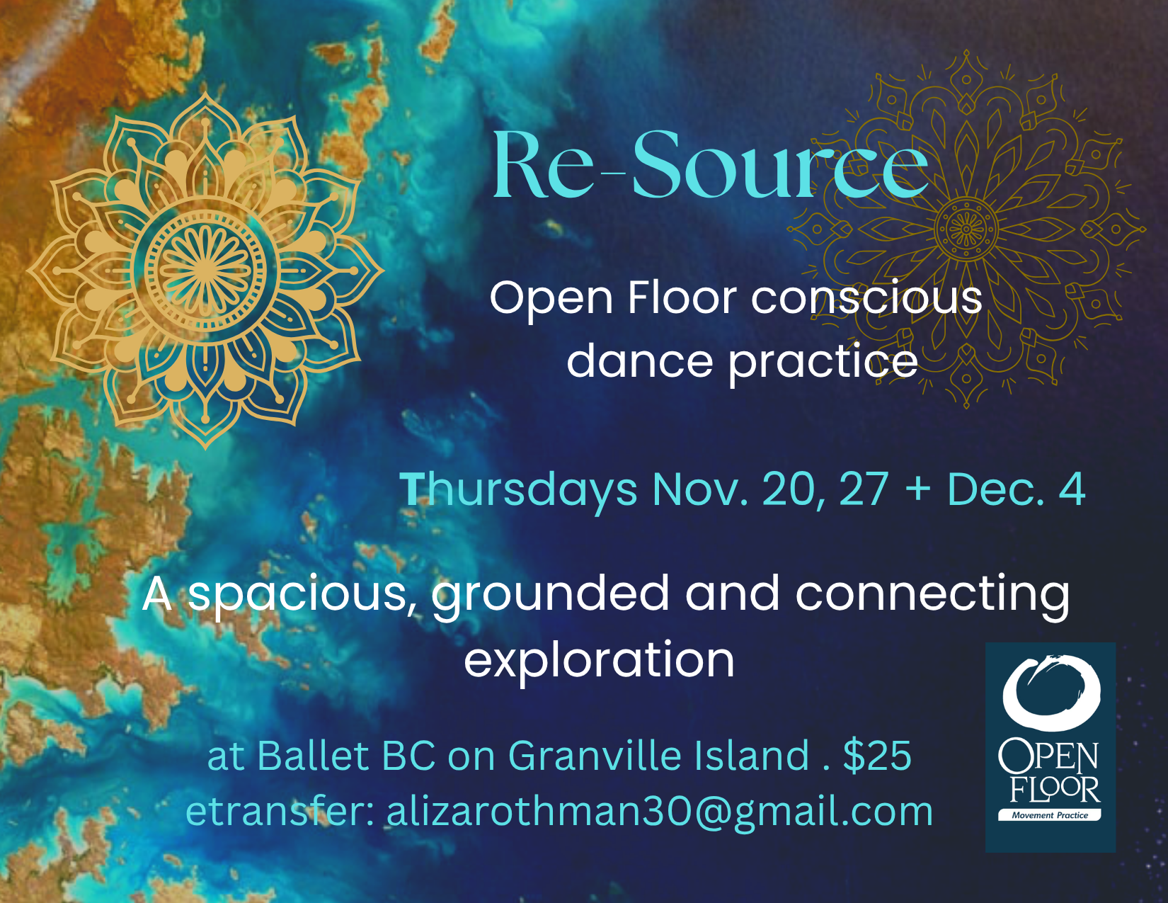 Open Floor is a resource based conscious dance practice. Classes are gently guided. We follow the rhythm of the music to return to the rhythm of our souls.